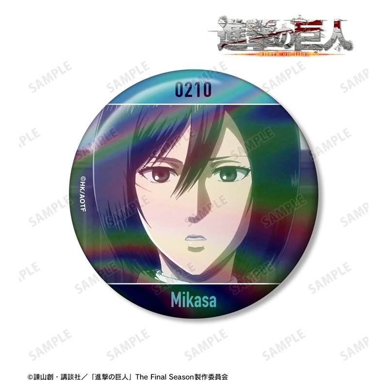 諫山創先生原作のアニメ「進撃の巨人」より、キャラクターグッズ『【グッズ-バッチ】TVアニメ『進撃の巨人』 ミカサ 75mm場面写オーロラ缶バッジ【再販】