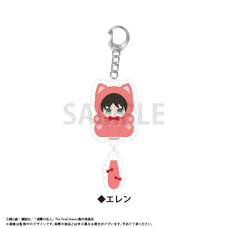 諫山創先生原作のアニメ「進撃の巨人」より、キャラクターグッズ『【グッズ-キーホルダー】進撃の巨人 たぴにゃんこぷらぷらアクリルキーホルダー エレン