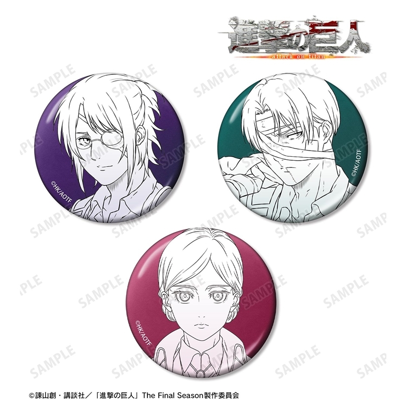 諫山創先生原作のアニメ「進撃の巨人」より、キャラクターグッズ『【グッズ-バッチ】TVアニメ『進撃の巨人』 ハンジ&リヴァイ&ヒストリア メタリック缶バッジ3個セット