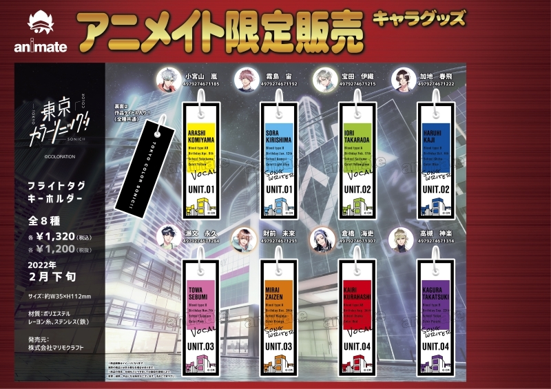 バディ達の青春音楽ストーリー「東京カラーソニック!!」(略称: カラソニ)よりキャラクターグッズ『東京カラーソニック!! フライトタグキーホルダー 宝田 伊織