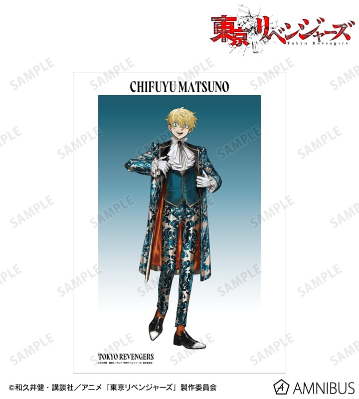 和久井健原作のTVアニメ「東京リベンジャーズ」よりキャラクターグッズ『描き起こし Art by AU 松野 千冬 スーツver. A3マット加工ポスター』が、AMNIBUSで2025年10月上旬発売