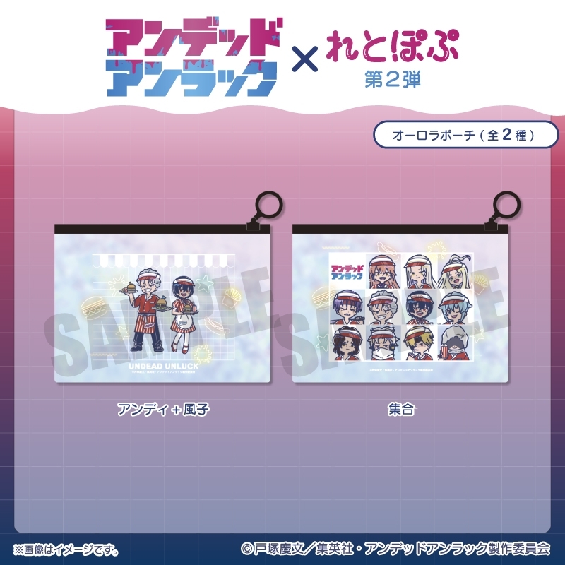 戸塚慶文原作のTVアニメ「アンデッドアンラック」(略称: アンデラ)よりキャラクターグッズ『【グッズ-ポーチ】TVアニメ「アンデッドアンラック」 れとぽぷ 第2弾 オーロラポーチ 集合