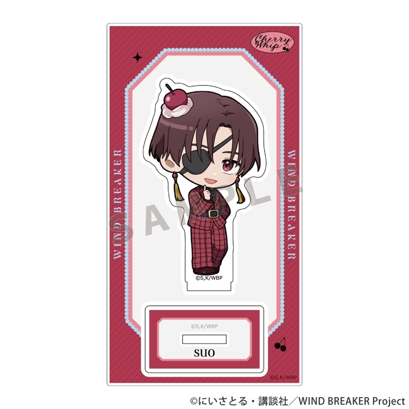 マガジンポケット(講談社)にて連載中の「にいさとる」先生原作のアニメ「WIND BREAKER ウィンドブレイカー」(略称: ウィンブレ)より、キャラクターグッズ『【グッズ-スタンドポップ】WIND BREAKER アクリルスタンド(蘇枋 隼飛/さくらんぼほいっぷ)