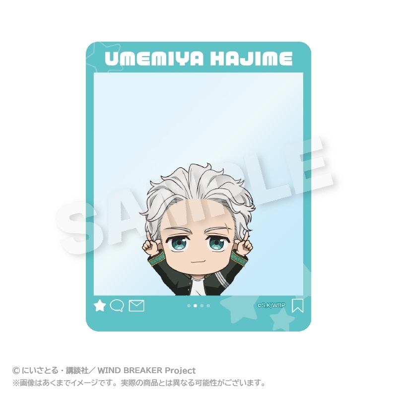 マガジンポケット(講談社)にて連載中の「にいさとる」先生原作のアニメ「WIND BREAKER ウィンドブレイカー」(略称: ウィンブレ)より、キャラクターグッズ『【グッズ-カード】WIND BREAKER SNS風アクリルカード ぽいんつver. 梅宮 一