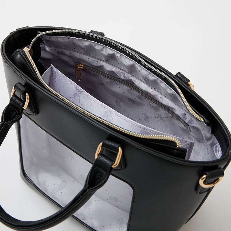 表地:合成皮革 透明生地:ポリ塩化ビニル 裏地・リボン:ポリエステル 引手:亜鉛合金 金具:鉄