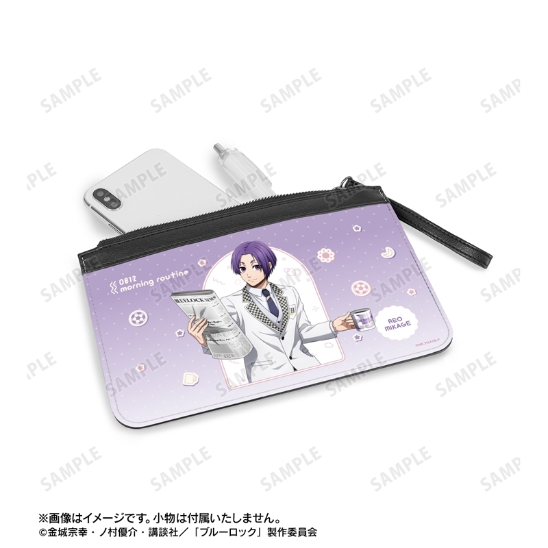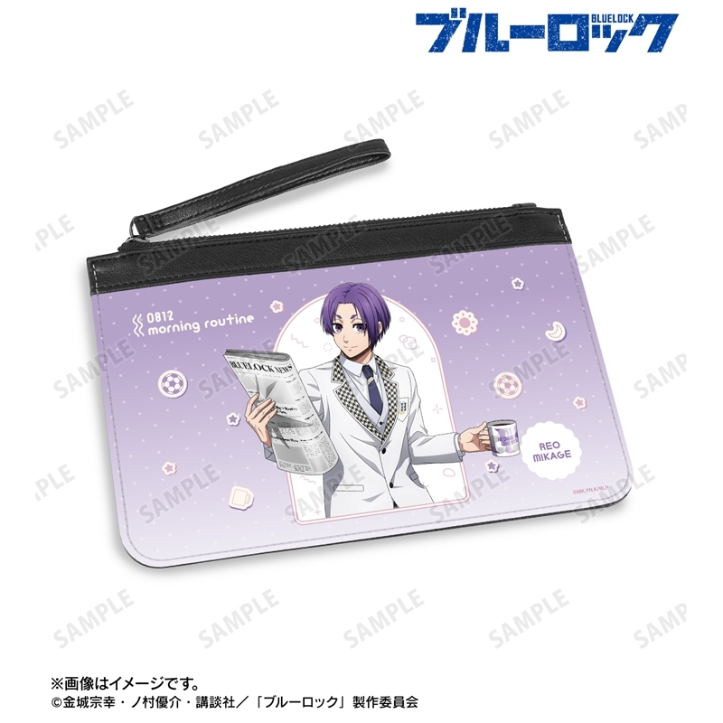 金城宗幸先生とノ村優介先生ら原作のアニメ「ブルーロック」より、キャラクターグッズ『【グッズ-ポーチ】TVアニメ『ブルーロック』 描き下ろし 御影 玲王 モーニングルーティンver. PUレザーフラットポーチ【再販】