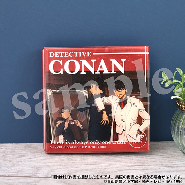 「名探偵コナン」より美麗なイラストを使用した、大きな缶バッジとアクリルのクリアカードがセットになった、立てて飾れるグッズセットが登場!雑誌のようなデザインのブック風折りたたみパッケージは、開くと自立するのでそのままお部屋のインテリアとして飾ることができます!使わない時はコンパクトに折りたたんで収納も!
