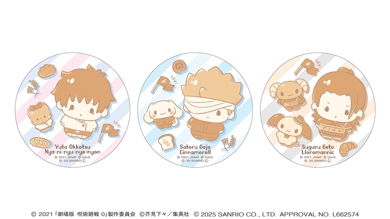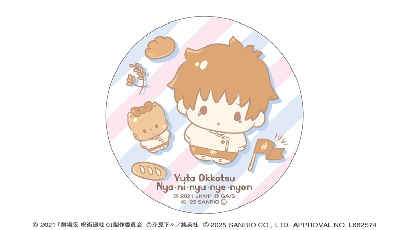 芥見下々先生原作のアニメ「呪術廻戦」より、キャラクターグッズ『【グッズ-バッチ】劇場版 呪術廻戦 0 サンリオキャラクターズ ラウンド缶バッジ 乙骨憂太×ニャニィニュニェニョン 2025Ver.